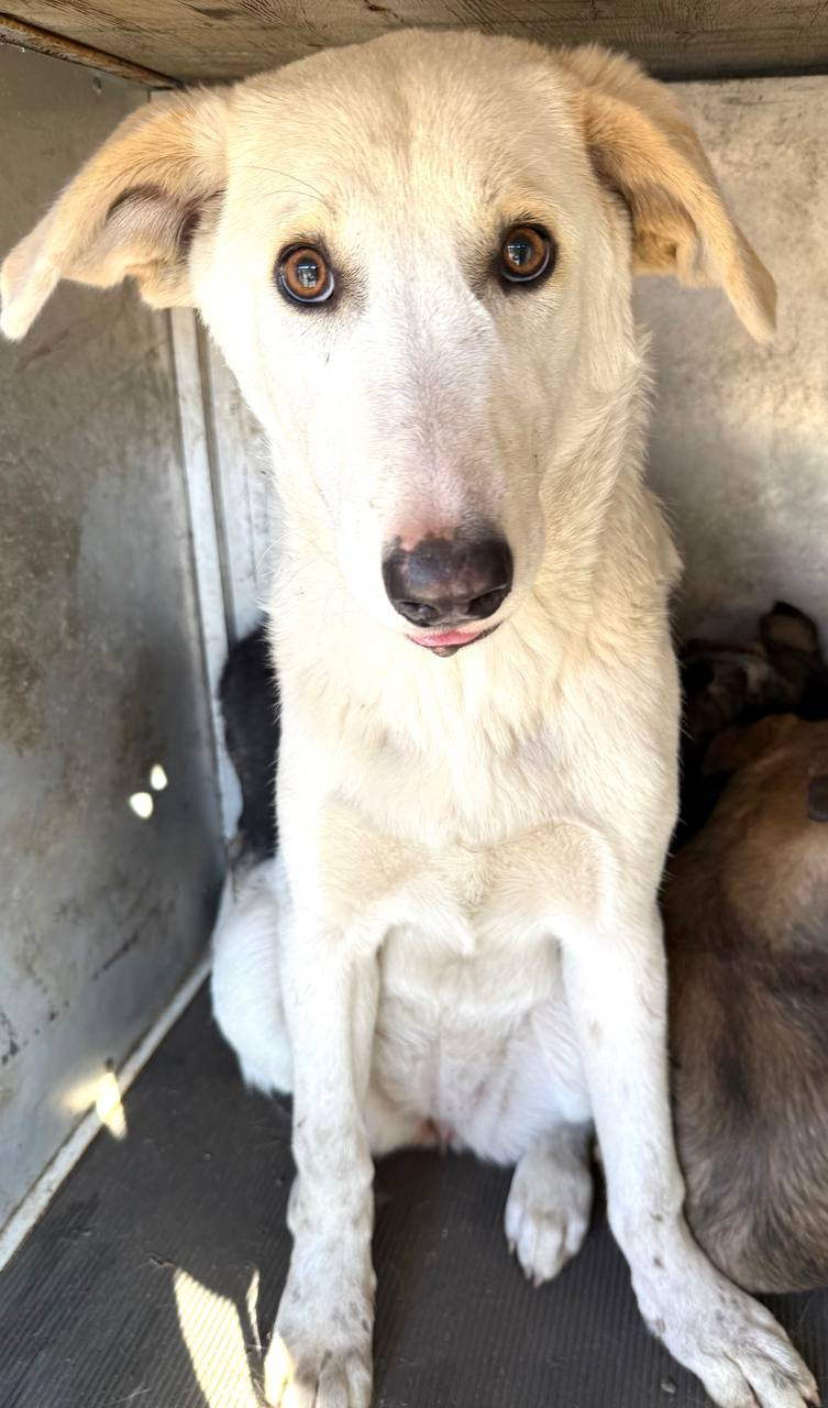 собака беспородная, сука 10 месяцев, бело-рыжего окраса