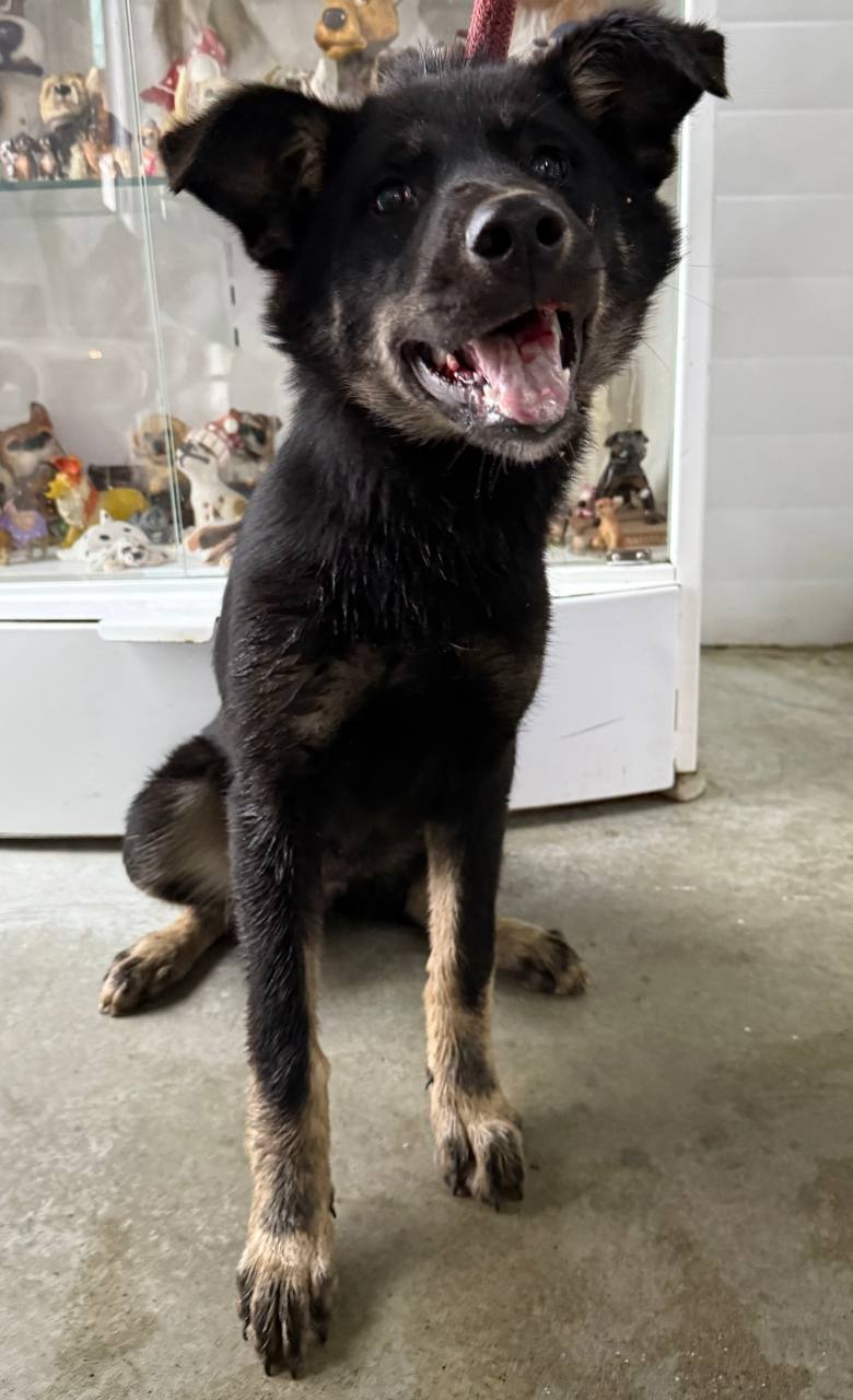 собака беспородная, сука 1 год, черно-подпалого окраса