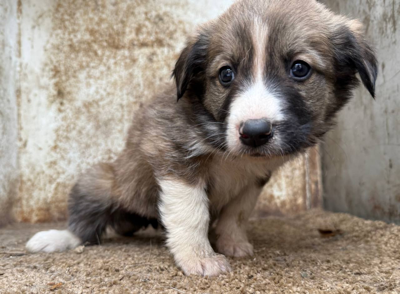 собака беспородная сука 1 месяц серо-белый окрас