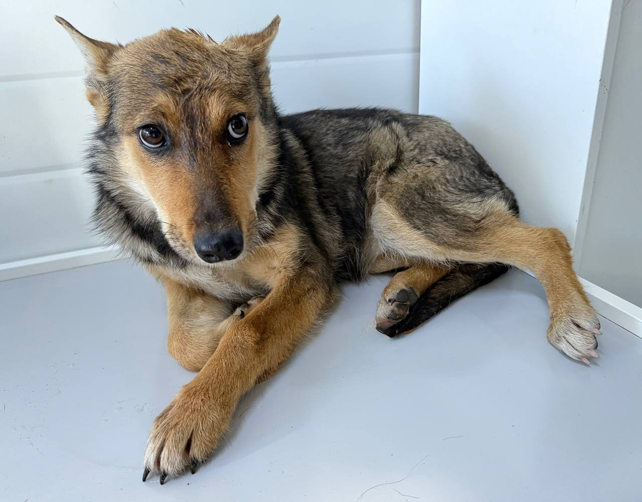 собака беспородная сука 6 месяцев рыже-серый окрас