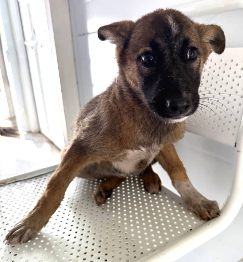 собака беспородная, сука 3 мес, рыже-черного окраса