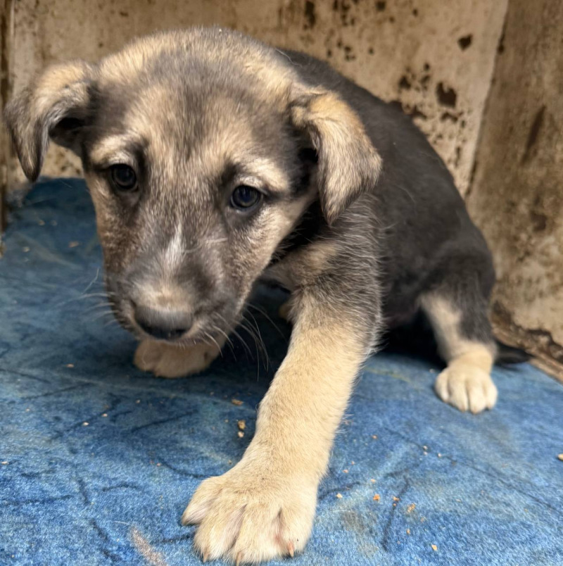 собака беспородная, кобель 4 мес, серо-черного окраса