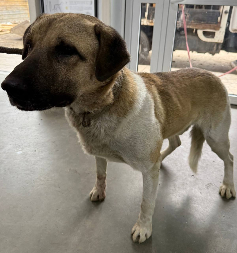 собака беспородная,кобель 6 лет, бело-рыжего окраса