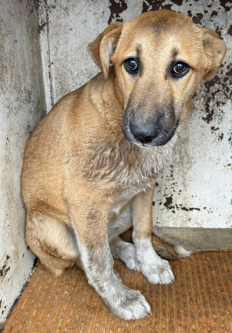 собака беспородная,сука 1 год, бело-рыжего окраса