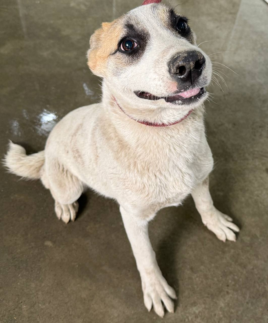 собака беспородная, сука 1 год, бело-рыжего окраса