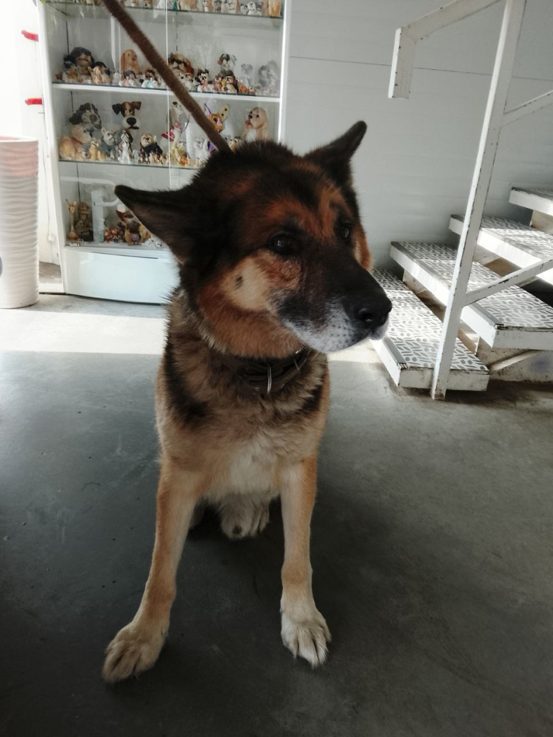 собака беспородная,кобель 7 лет, рыже-черного окраса