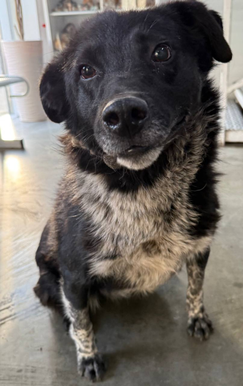 собака беспородная, кобель 8 лет, черно-белого окраса