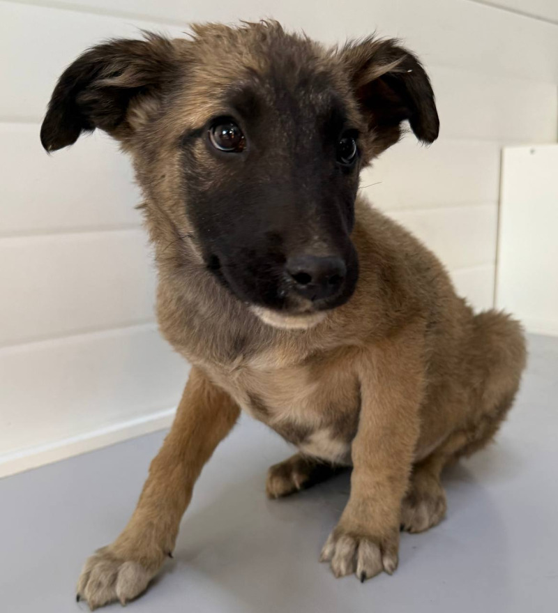 собака беспородная, кобель 3 мес. серо-белого окраса