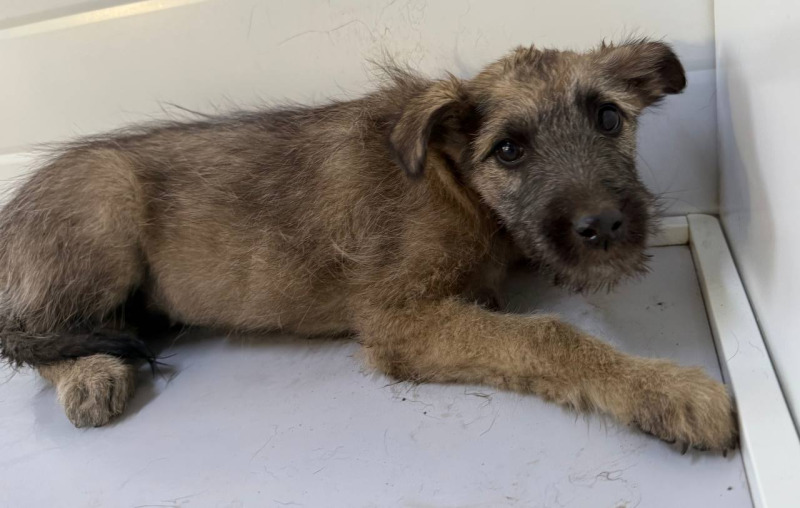 собака беспородная,сука 3 мес. серого окраса
