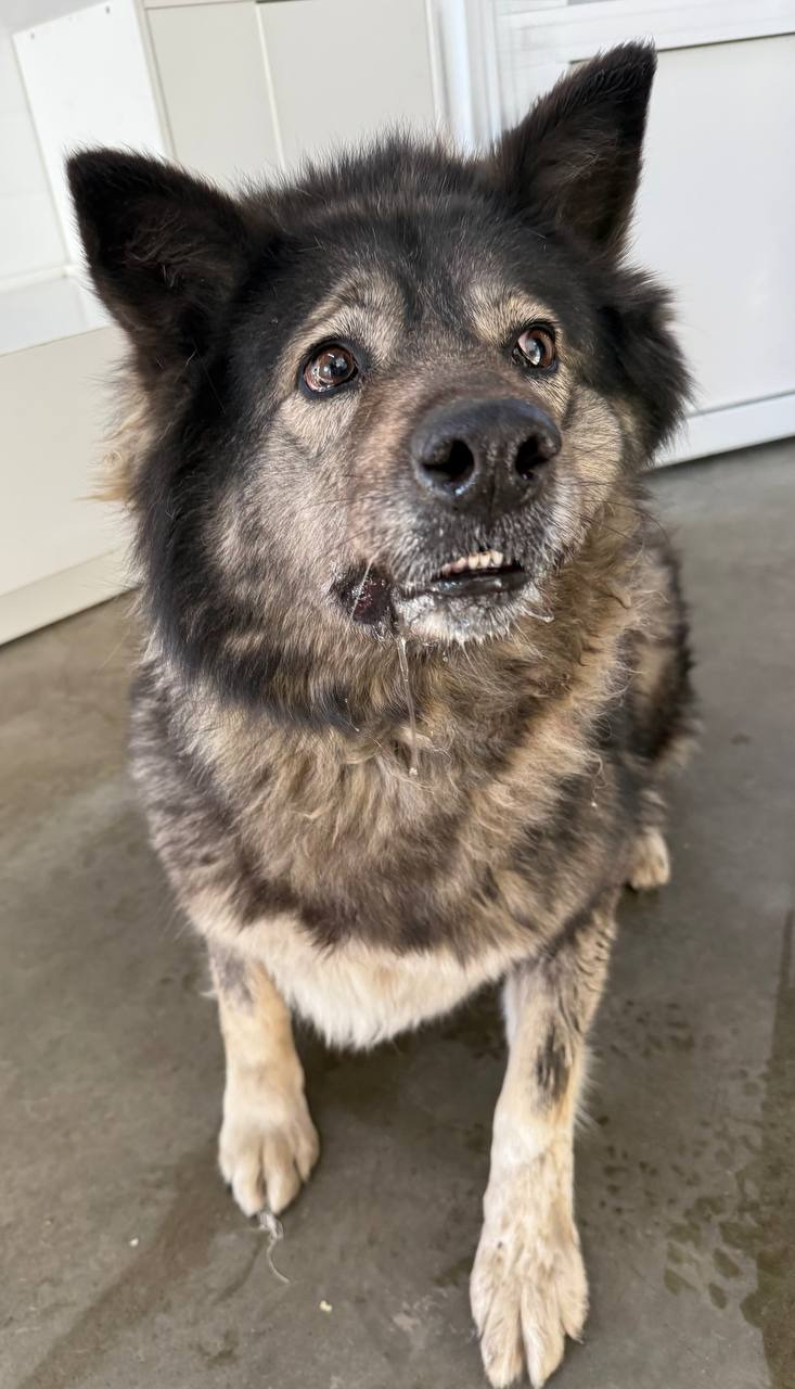 Беспородный, серый, сука, 8 лет, 38 кг.