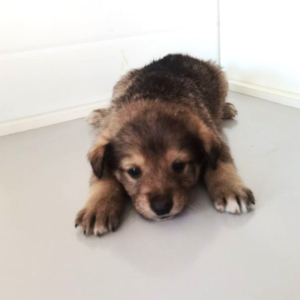 собака беспородная, кобель 1 мес, серо-рыжего окраса