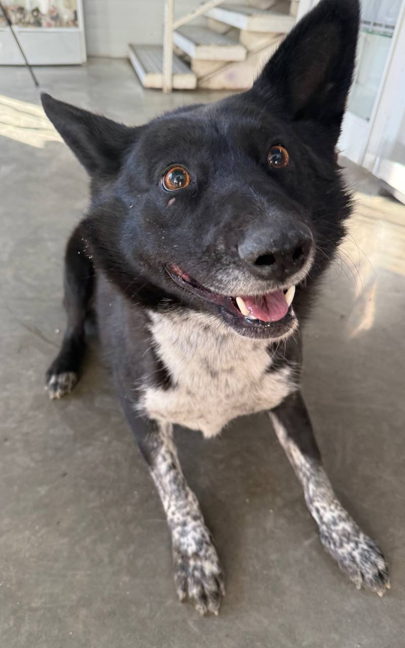 собака беспородная, сука 6 лет, черно-белого окраса