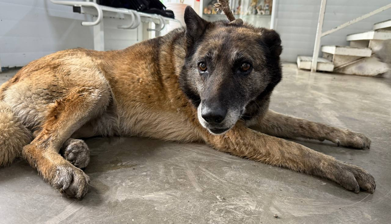 собака беспородная, сука 10 лет, рыже-черного окраса
