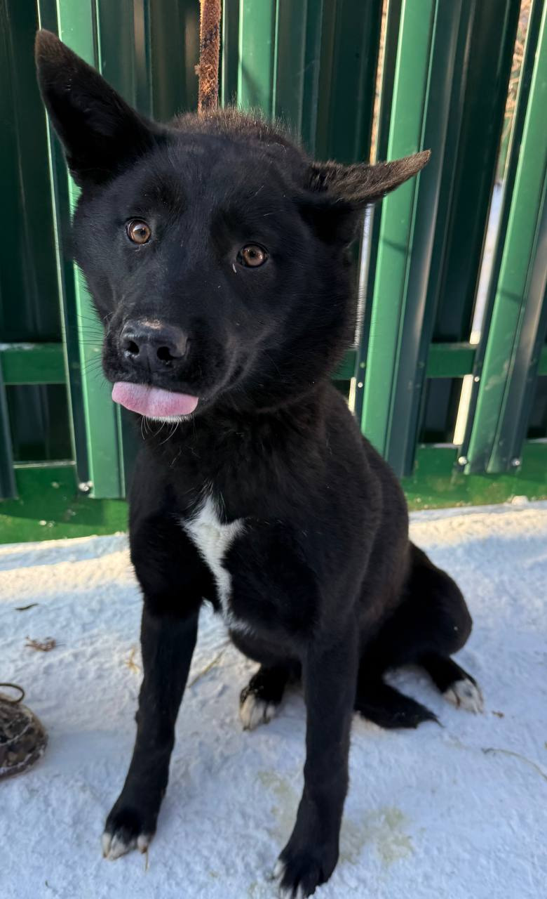 собака беспородная,сука 1 год, черно-белого окраса