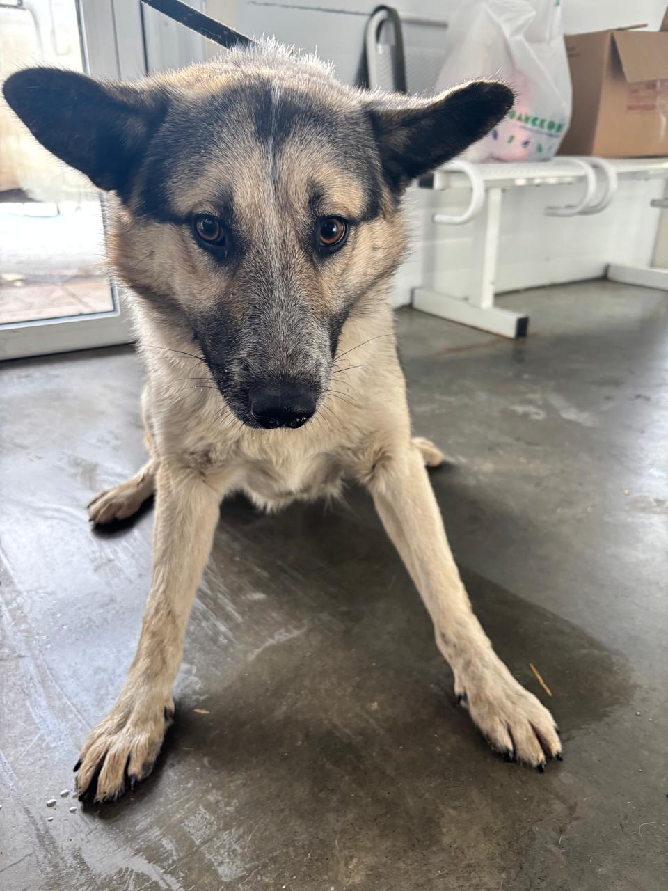 собака беспородная, кобель 4 года, черно-белого окраса