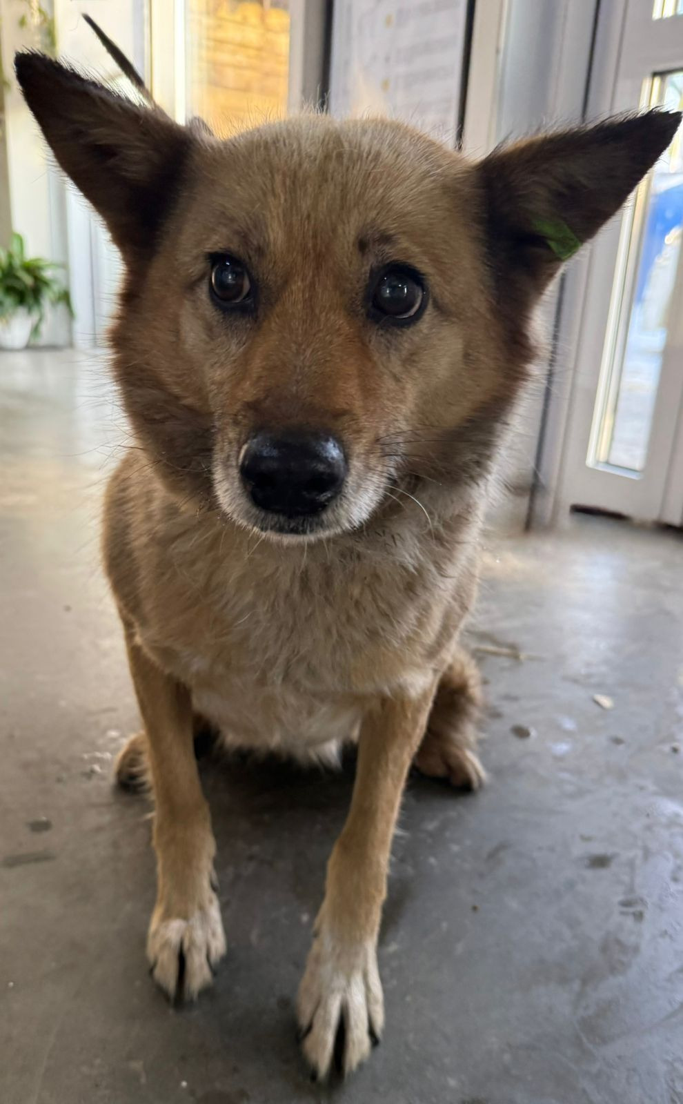 собака беспородная,сука 6 лет, рыже-белого окраса