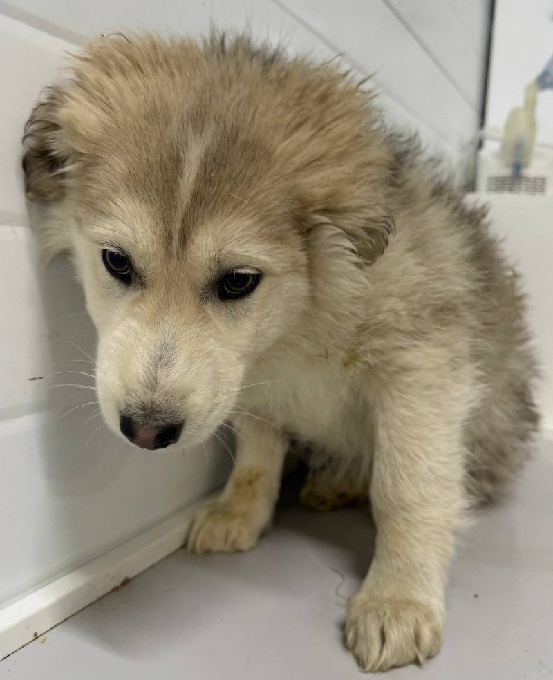 собака беспородная, кобель 6 мес, серо-белого окраса