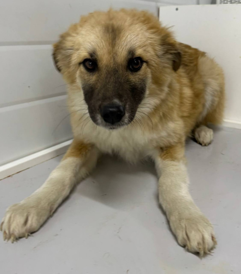 собака беспородная, сука 6 мес, бело-рыжего окраса