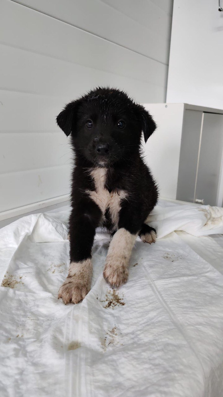 собака беспородная 3 месяца кобель черный с белой грудкой