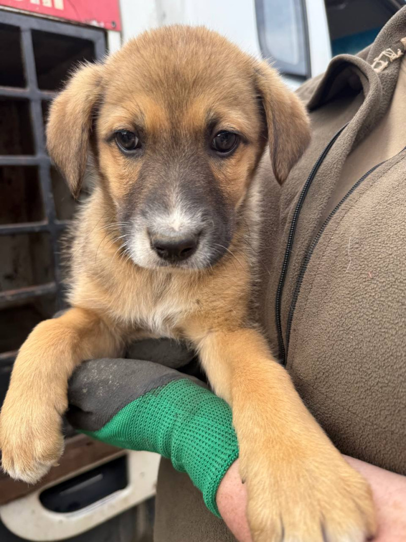 собака беспородная 1,5 месяца кобель рыже-белый окрас