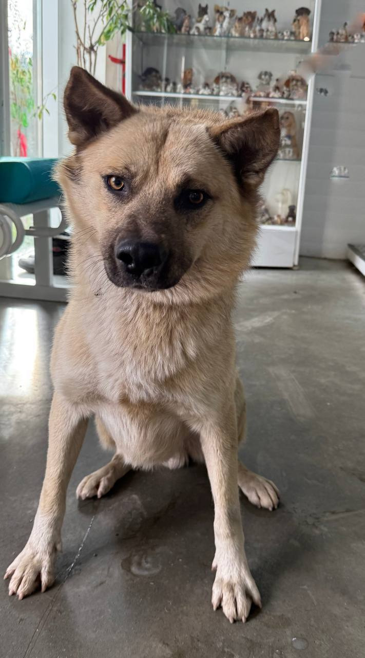 собака беспородная 7 лет кобель светло-серый