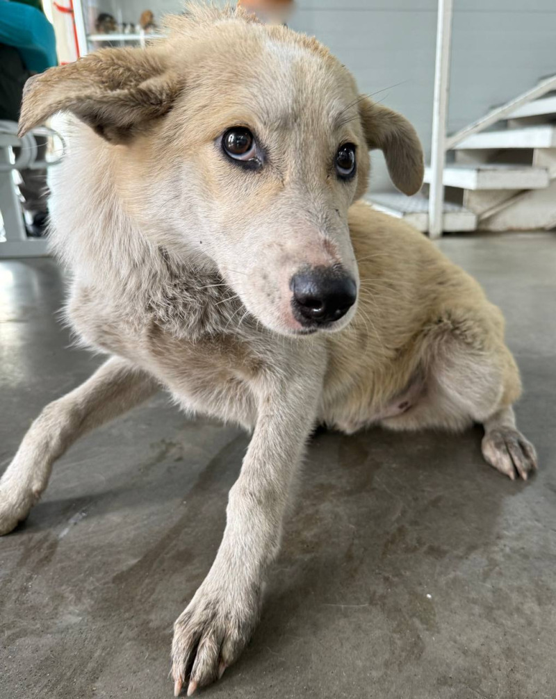 собака беспородная 1 год кобель бежевый окрас