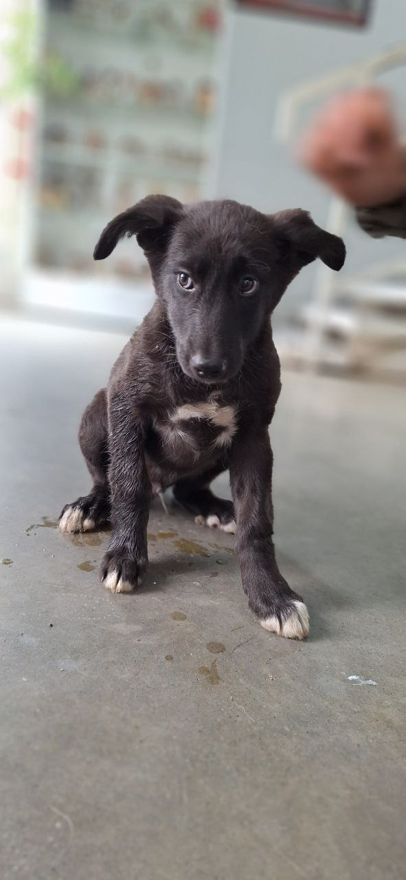 собака беспородная 5 месяцев кобель черно-белый окрас