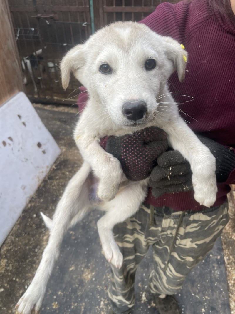 собака беспородная 5 месяцев кобель бело-серый окрас