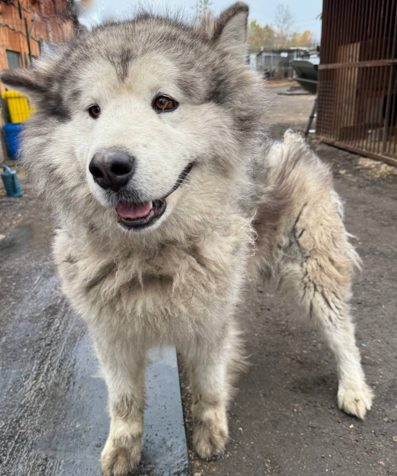 метис кобель 4 года бело-серый окрас