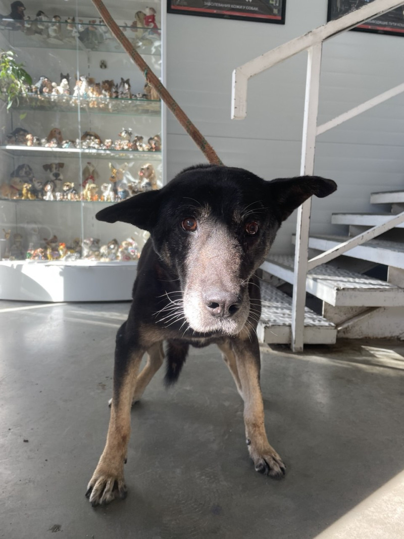 собака беспородная кобель 10 лет черно-подпалого окраса