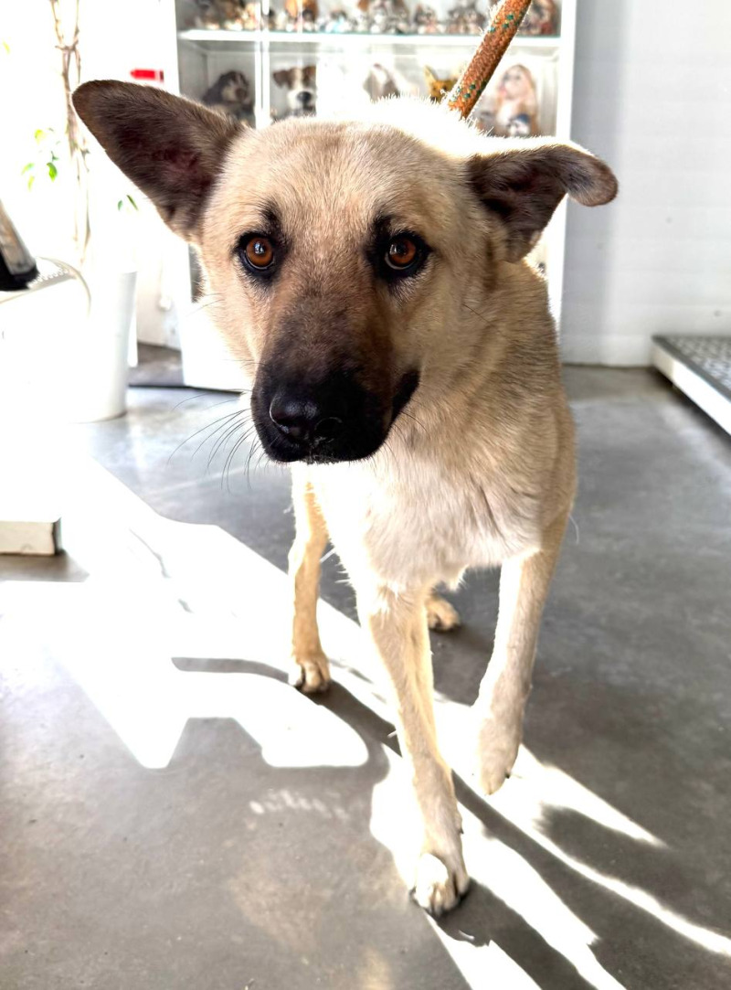 собака беспородная, кобель 2 года светло-серого окраса
