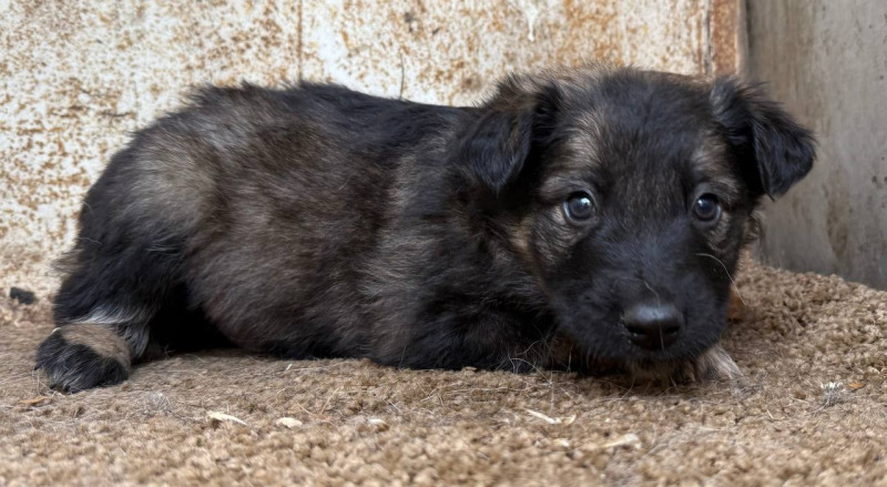 собака беспородная кобель 1 месяц черно-серый окрас