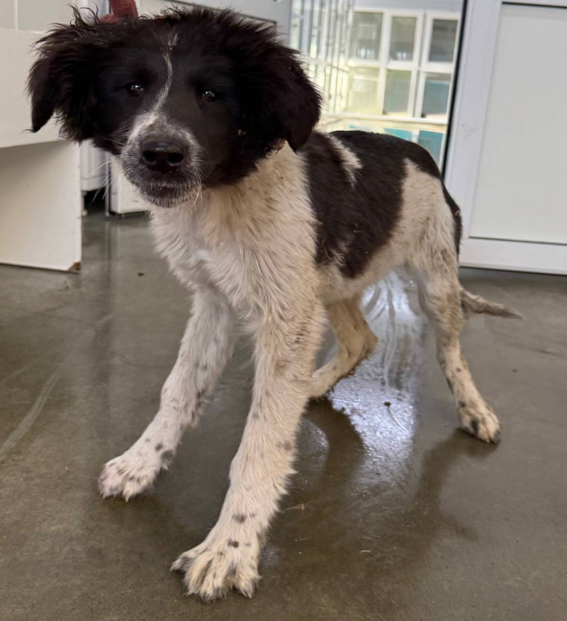 собака беспородная сука 8 месяцев бело-черный окрас