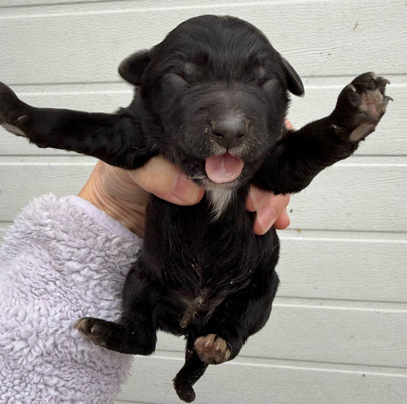 собака беспородная, кобель 2 дня, черно-белого окраса