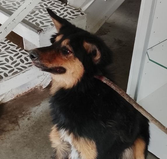 собака беспородная,кобель 4 лет, черно-рыжего окраса
