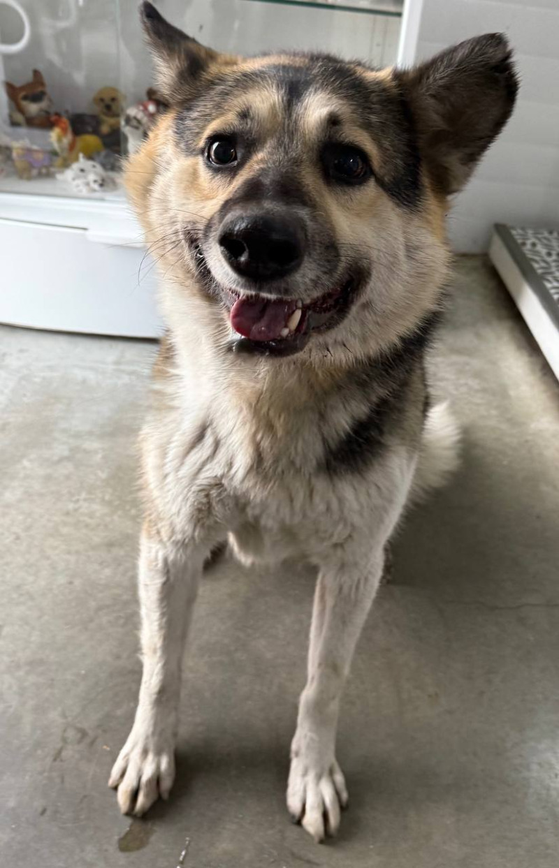 собака беспородная, кобель 7 лет, трехцветного окраса