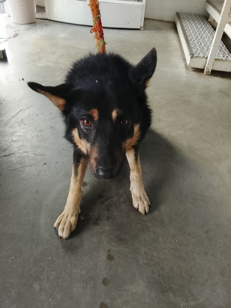собака беспородная, кобель 3 года, черно-подпалого окраса