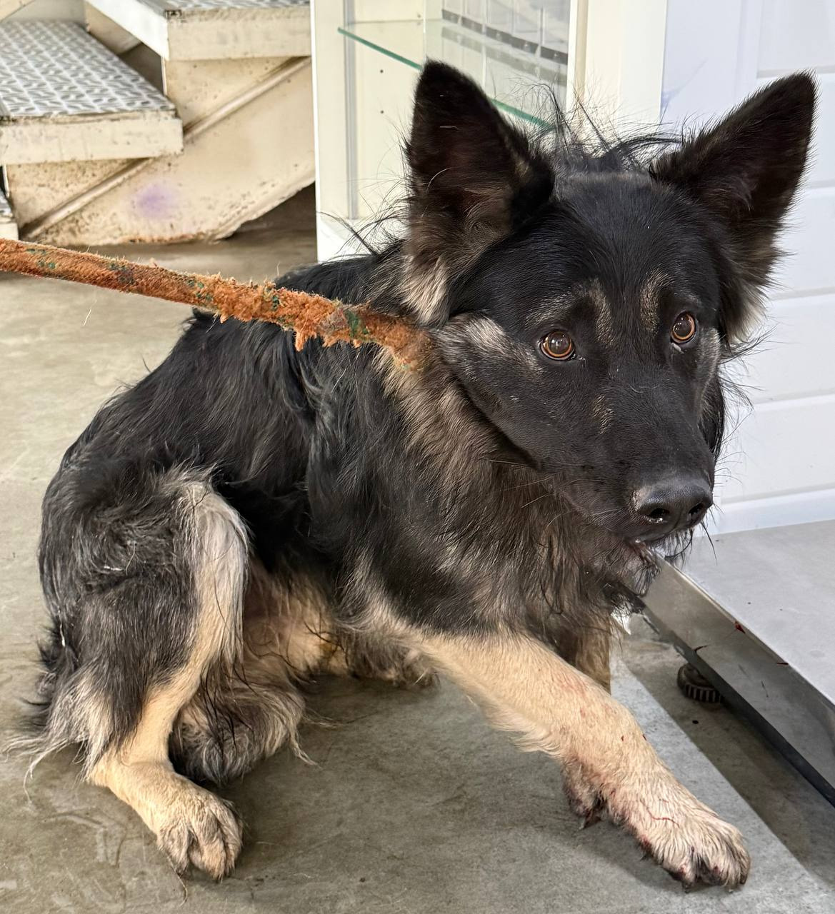 собака беспородная, кобель 3 года, черно-серого окраса