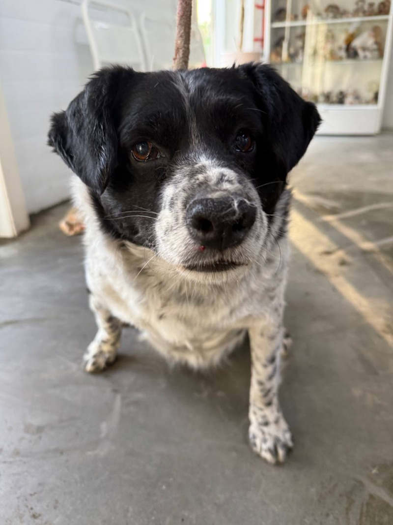 собака беспородная, кобель 9 лет,бело-черного окраса