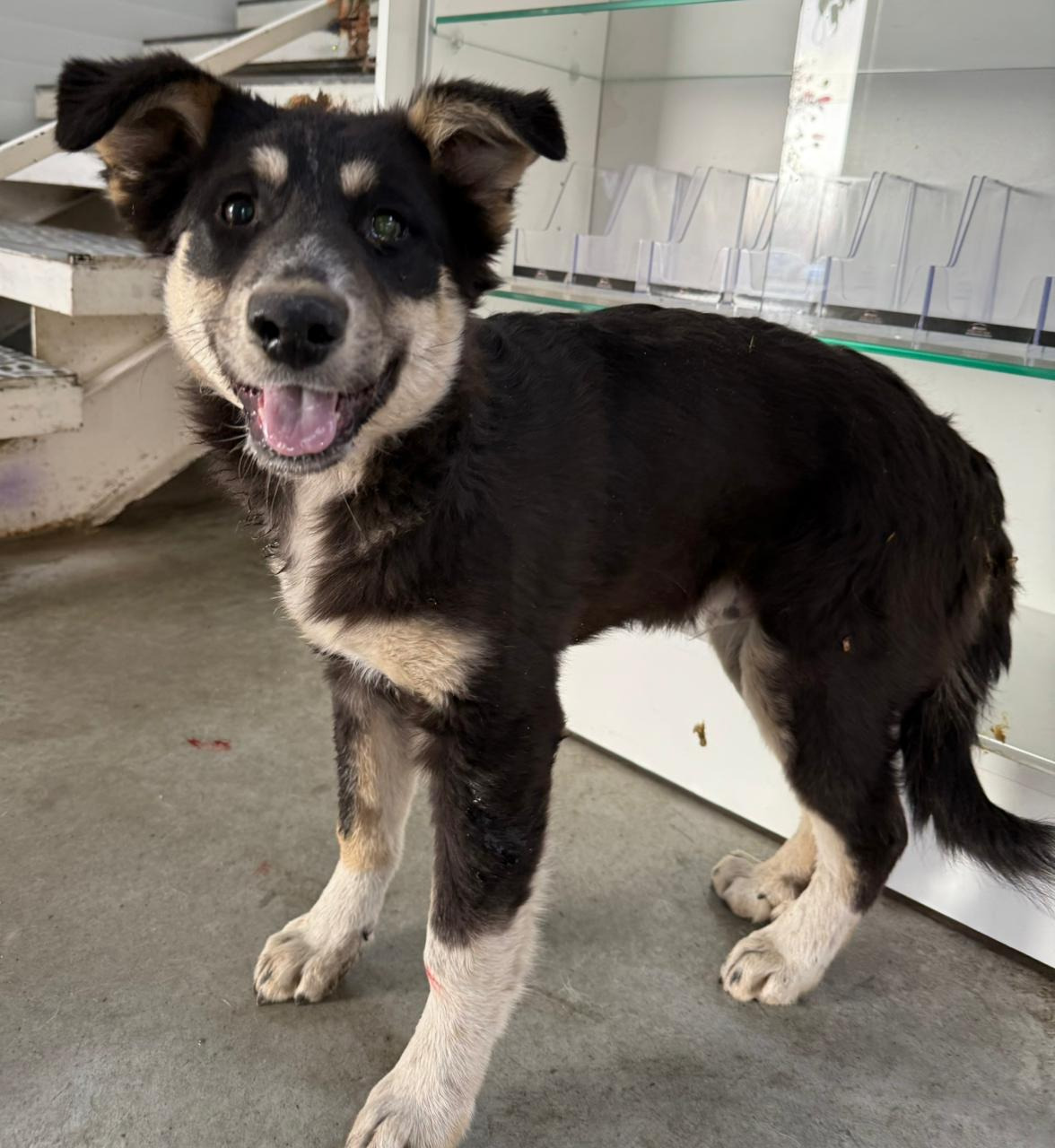 собака беспородная, кобель 10 мес. черно-белого окраса
