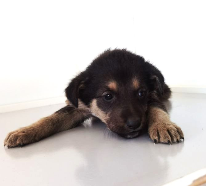 собака беспородная,кобель 1 мес. черно-подпалого окраса