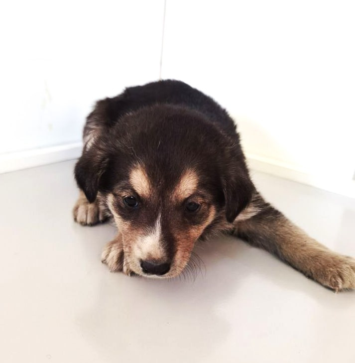 собака беспородная, кобель 1 мес, трехцветного окраса