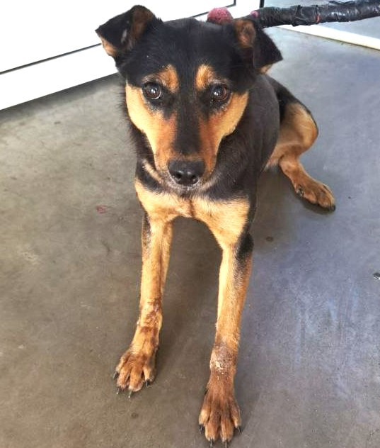 собака беспородная, сука 1 год, черно-рыжего окраса