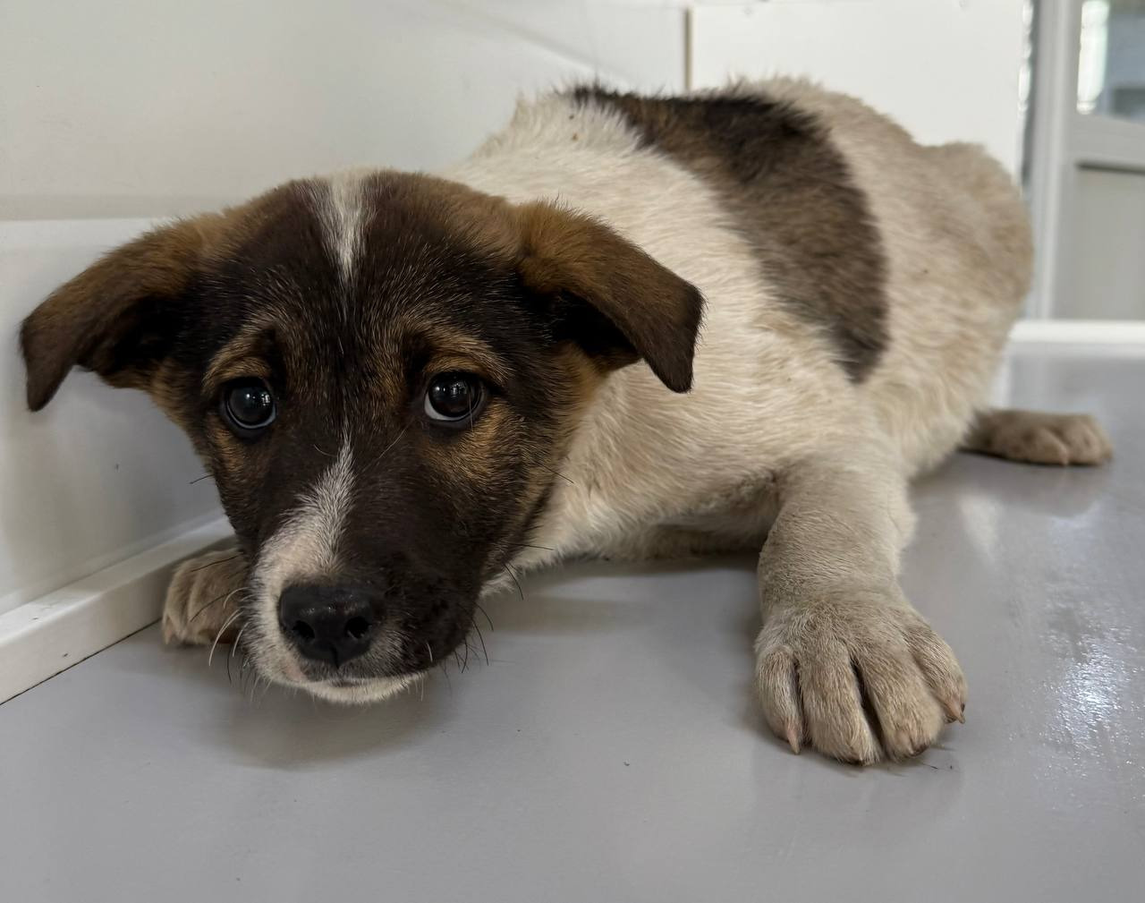 собака беспородная,кобель 4 мес, бело-серого окраса