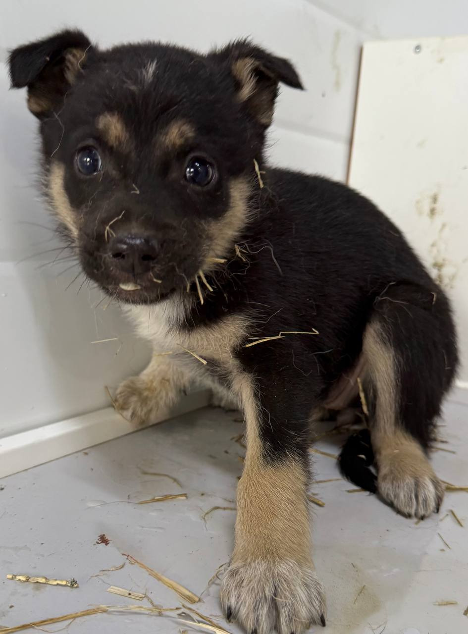 собака беспородная, кобель 1 мес,рыже черного-окраса