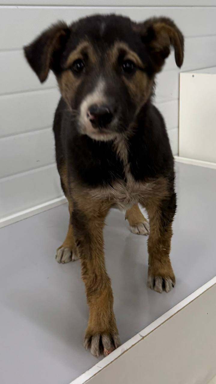 собака беспородная, сука 10 мес,трехцветного окраса