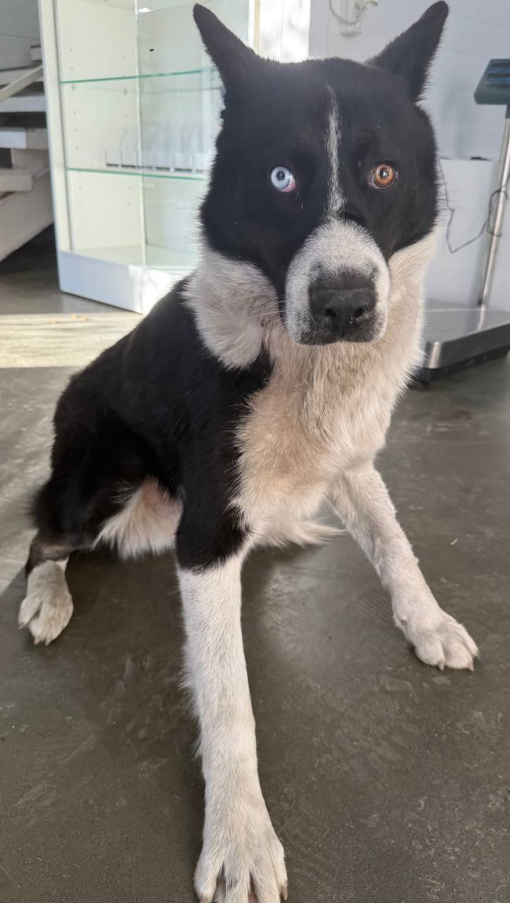 собака беспородная, бело-черный, кобель, 4 года