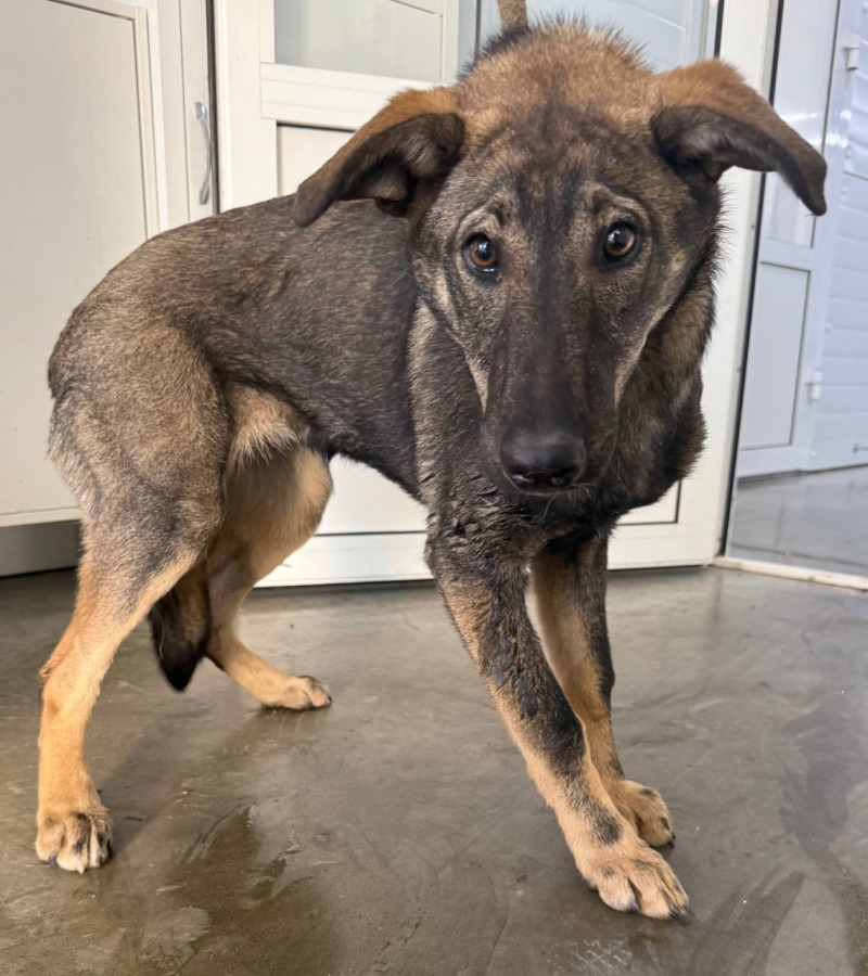 собака беспородная, рыже-черная, сука, 1 год