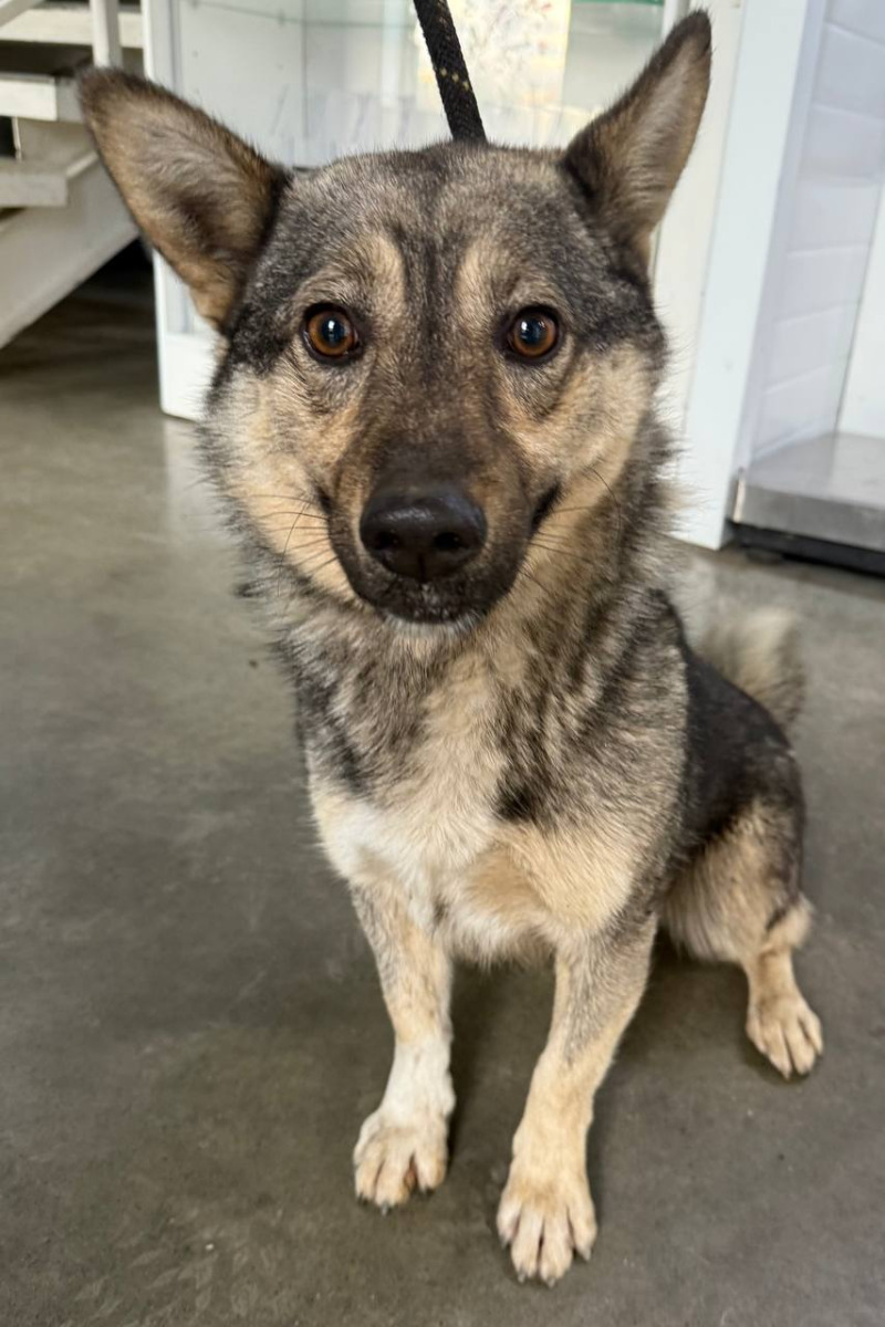 собака беспородная, серо-белый, кобель, 2 года
