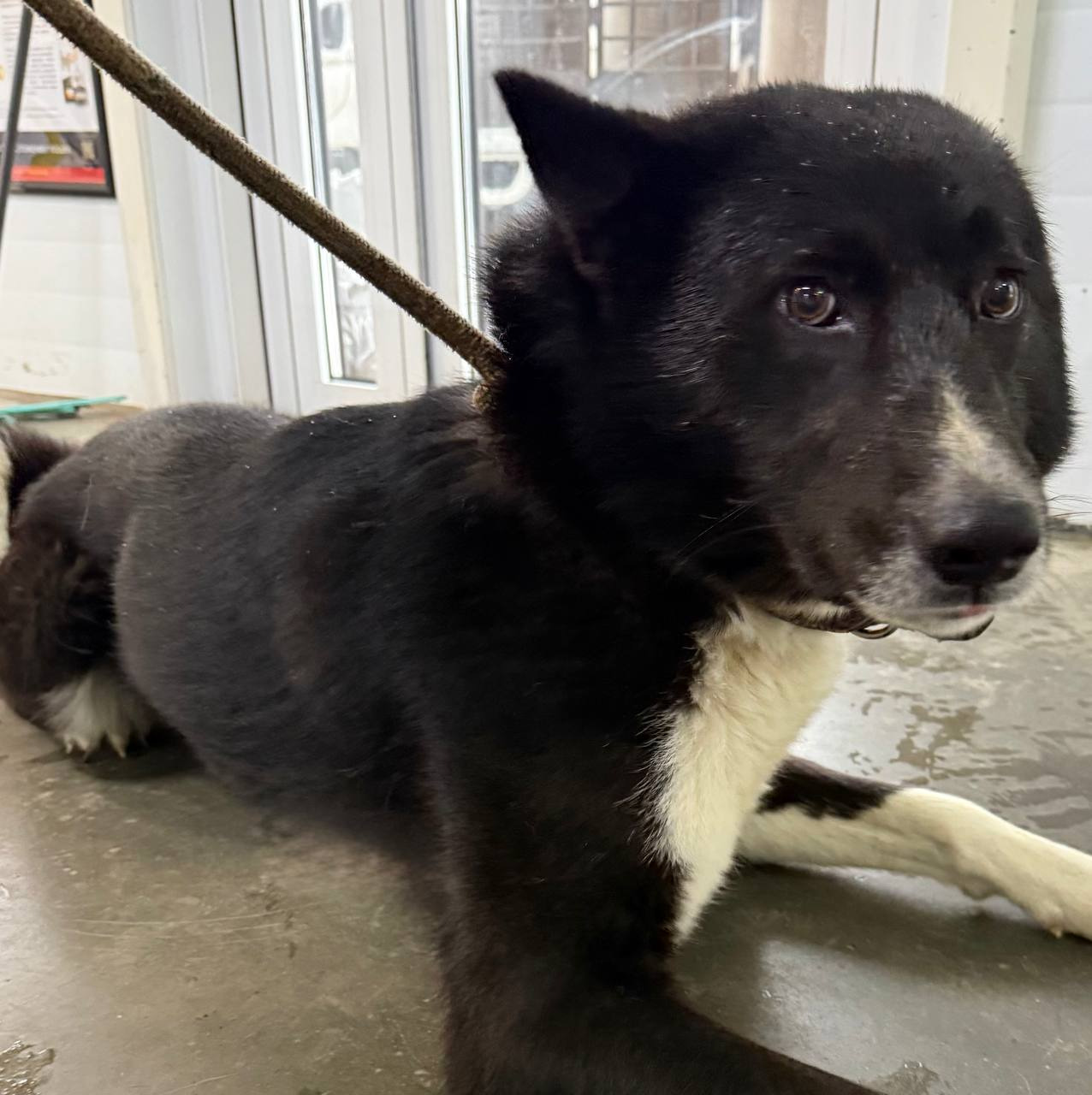 собака беспородная, кобель 5 лет, черно-белого окраса